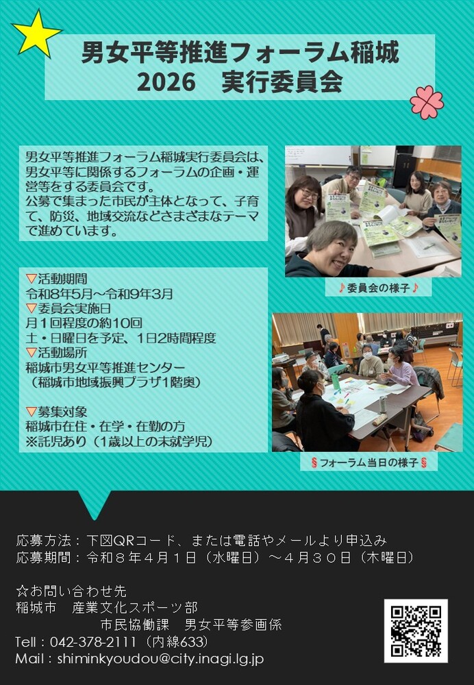 Estamos recrutando membros do Comitê Executivo do Fórum de Promoção da Igualdade de Gênero de Inagi